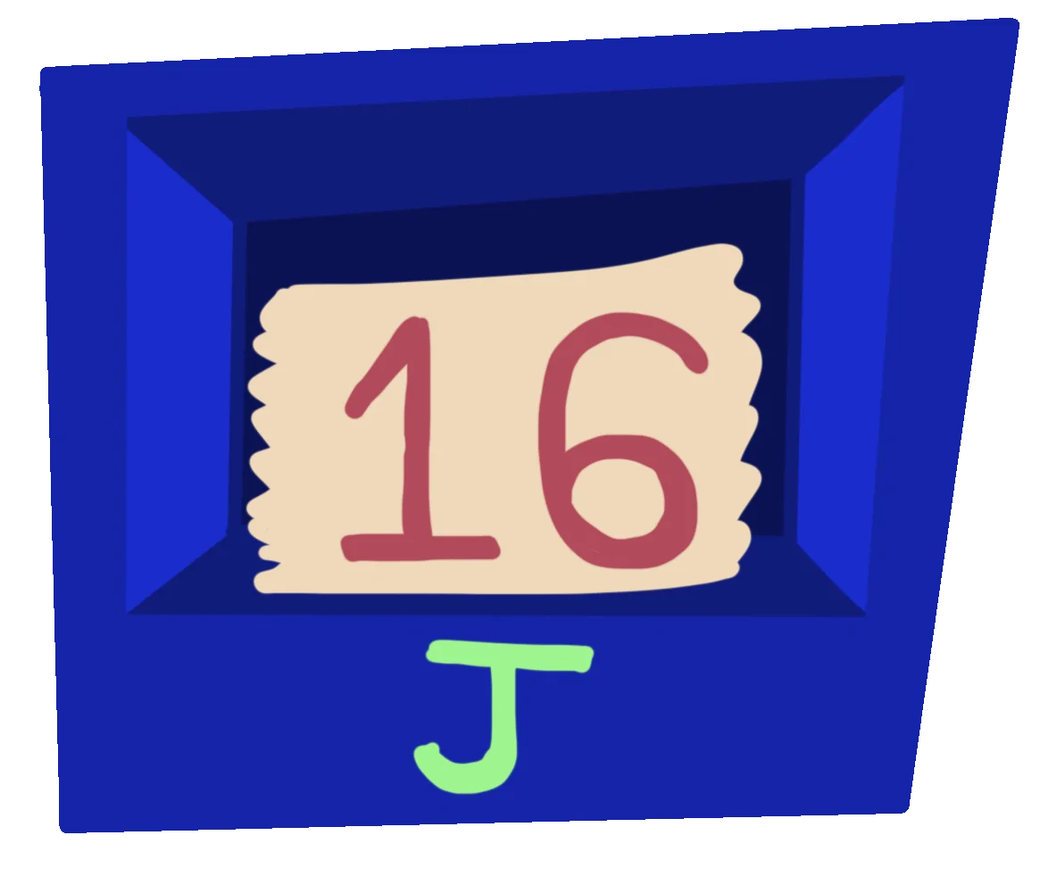 Let's imagine we have a card with the number 16 on it, and place it into a box called "J"